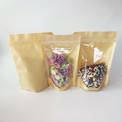 カスタマイズされたグラバープリント フロント 透明 スタンドアップ クラフト紙袋 食品包装のための湿度防止